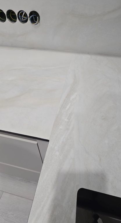 Столешница: компакт-столешница SLOPLAST «Агат белый» (MATTE), отличающаяся прочностью и устойчивостью к влаге.