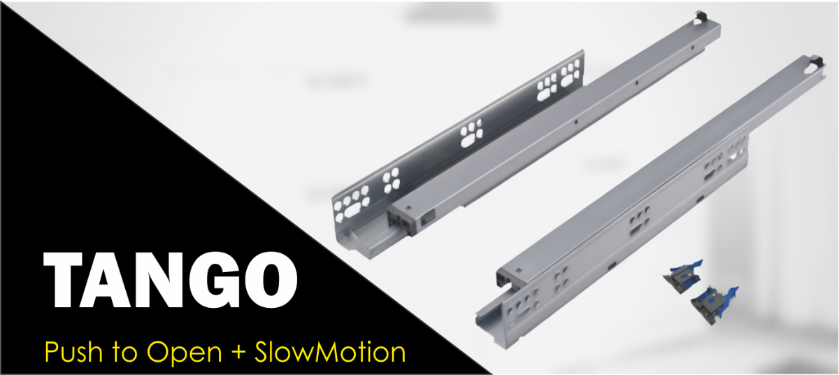 Представляем новинку, направляющие TANGO Push + SlowMotion. Это принципиально новое решение для создания эргономичной и комфортной мебели без ручек.